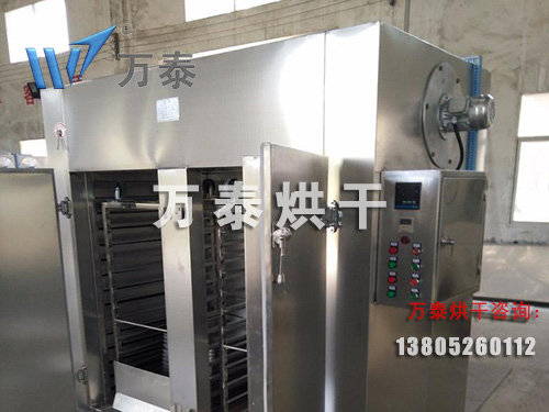 熱風烘干箱以蒸汽和電或煤炭為熱媒,利用高效加熱設(shè)備加熱,大量熱風在箱內(nèi)進行了熱風循環(huán),經(jīng)過不斷新風補充從進風口進入箱體,然后不斷從排濕口排出,這樣增加了傳熱效果,使箱內(nèi)物料水份逐漸減少,達到烘干效果。